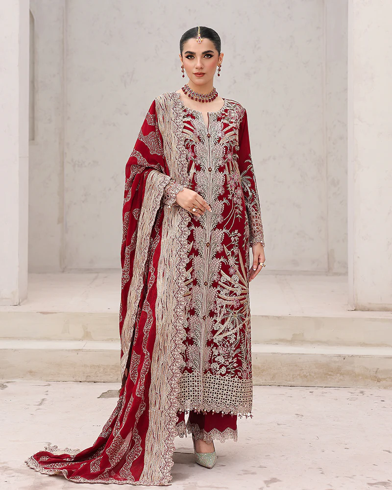 Chiffon shirt adorned with shimmering sequin embroidery, accented by pearls, crystals, naqshi work, and delicate hanging tassels