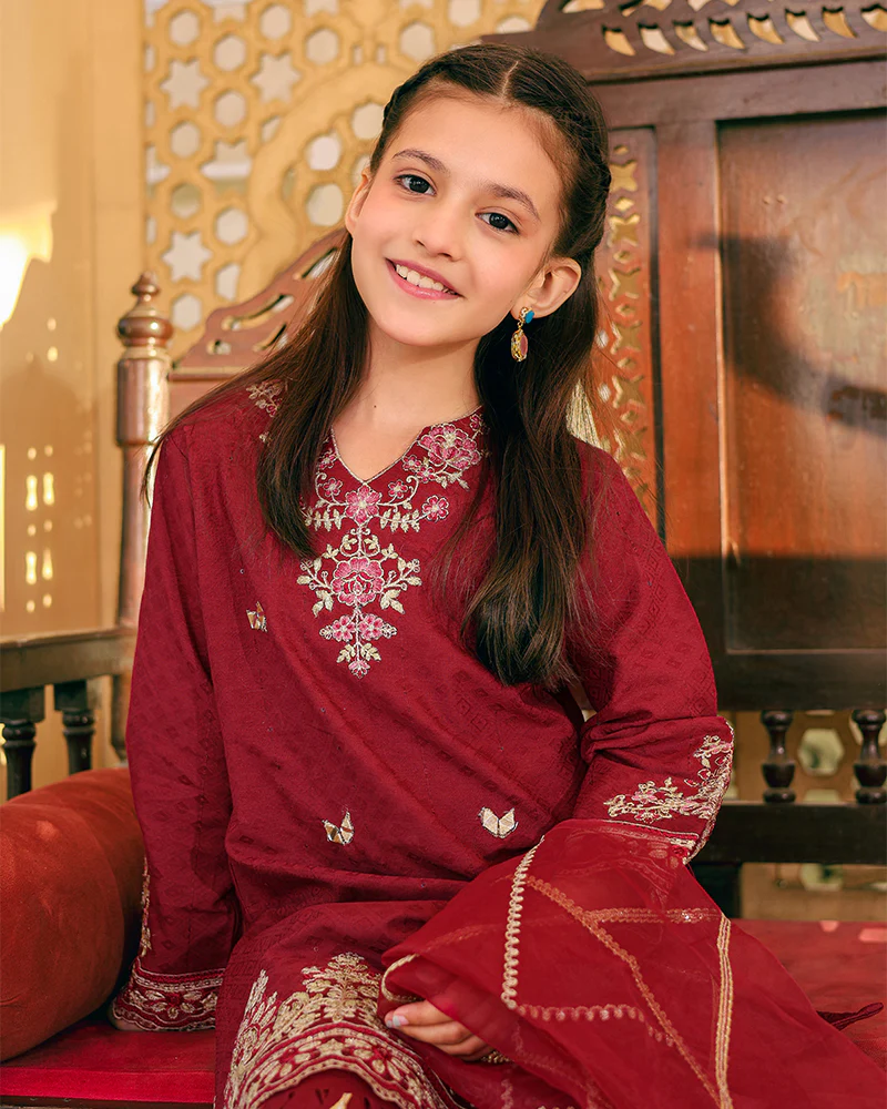Additional Description: 1-Behold the exquisite cotton jacquard shirt, adorned with shimmering sequins and intricate mirror work 2-Paired with a luxurious organza dupatta, embellished with delicate embroidery and sparkling sequins, finished with elegant laces 3-complete the ensemble, the cotton ghararah, lavishly adorned with embroidery. A truly stunning and opulent outfit fit for royalty.