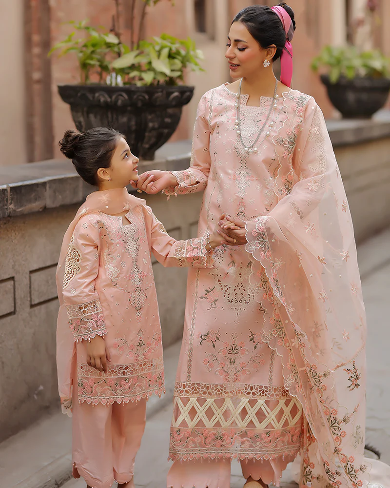 | Stunning cotton chikankari shirt! It is expertly crafted with intricate embroidery, organza patches, and eye-catching crystal tassels Organza dupatta features beautiful multi-thread and scalloped borders Cotton palazzo pants are adorned with elegant pearls embellishments. |
