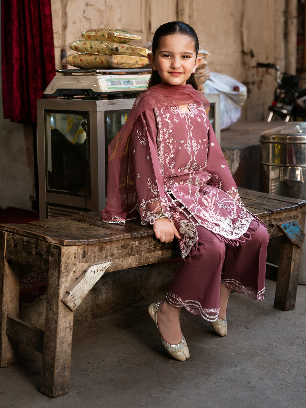 Net dupatta, a vision of ethereal beauty, adorned with intricate embroidery and a cascade of pearl embellishments.