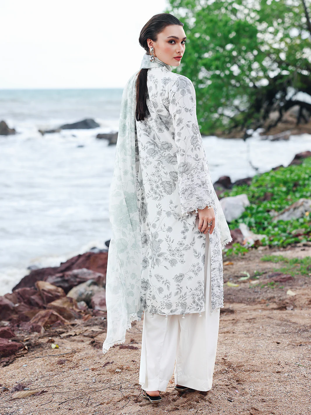 Premium crepe silk shirt adorned with sequin embroidery, pearls, crystals, and lace detailing
