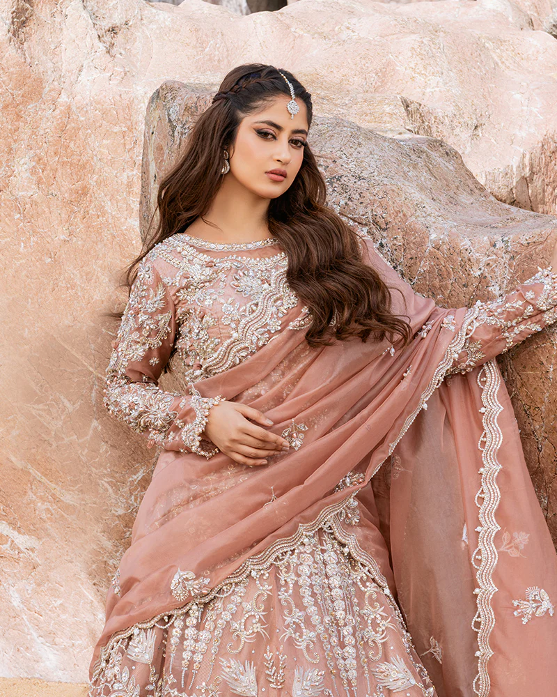 Additional Description: 1- The organza embroidered choli is enriched with heavy, detailed handcrafted adda work, including sleeves, front and back bodies. It is complemented by material swarovski, naqshi dabka, and pearls. 2- we offer a matching organza embroidered lehnga. This lehnga boasts a captivating design with back and front korian raw silk borders, adorned with heavy handcrafted adda work. The embellishments include pearls and naqshi dabka, enhancing the overall allure of the attire 3- Organza embroidered dupatta, lavishly enriched with meticulously handcrafted adda work 4- An additional can-can included